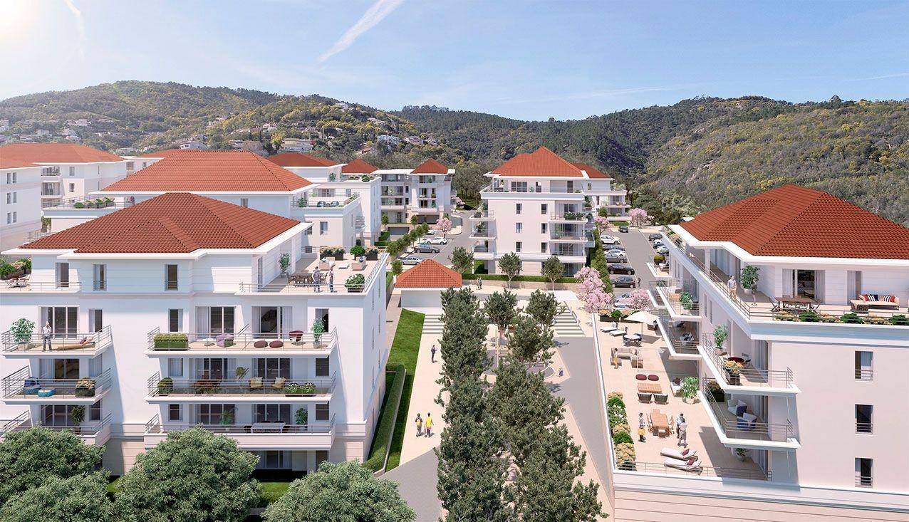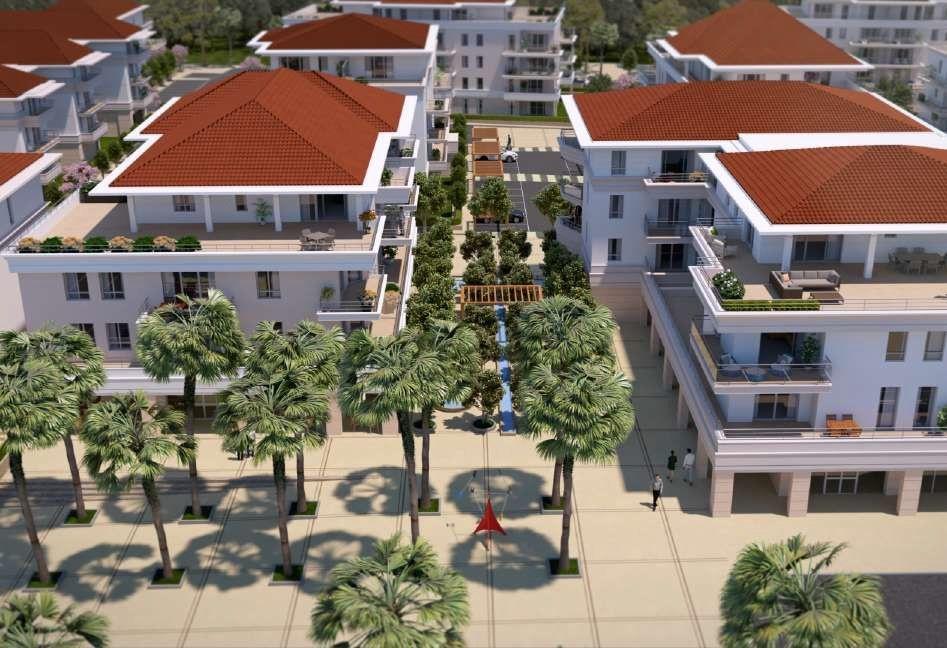 Dans la vallée de la Siagne, ce quartier est composé d’immeubles à taille humaine, à l’architecture harmonieuse et parfaitement intégrée dans son environnement. Les appartements, prolongés de terrasses ou de jardins, ont été soigneusement conçus avec des matériaux de qualité. Toiture de tuiles rouges et façades claires permettent d’allier modernité des lignes et respect de l’esprit azuréen. Des jardins de magnolias, de grenadiers, d’eucalyptus, ainsi qu’une oliveraie, une orangeraie et une fontaine centrale donnent une grande authenticité à cet ensemble. Traversée d’une palmeraie, l’ensemble immobilier Sianéo offre un cadre de vie verdoyant, avec sa grande place ouverte sur l’extérieur.